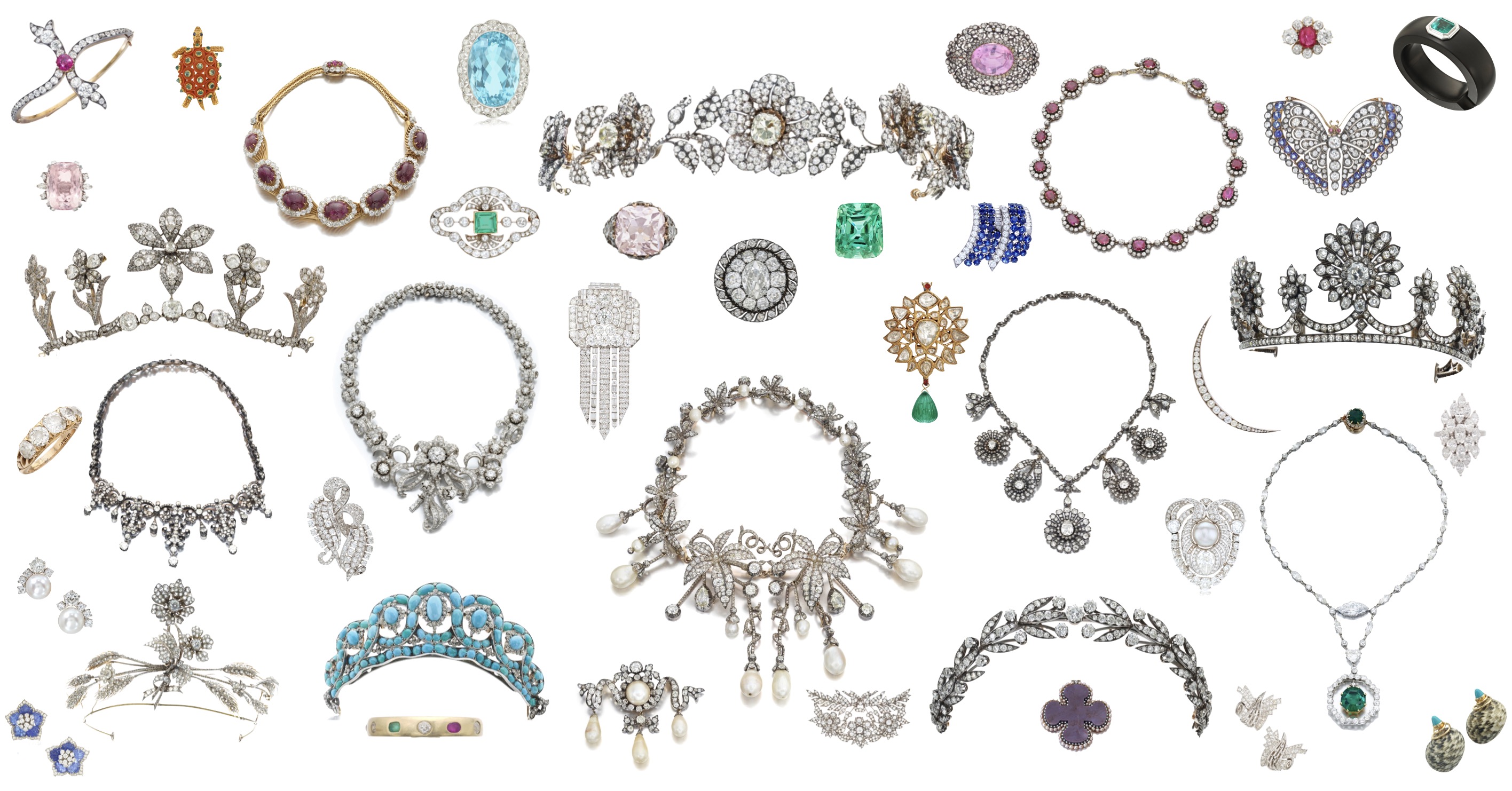 Diamond Tiara | Emerald and Diamond Brooch | Van Cleef & Arpels Gold and Diamond Bracelet |