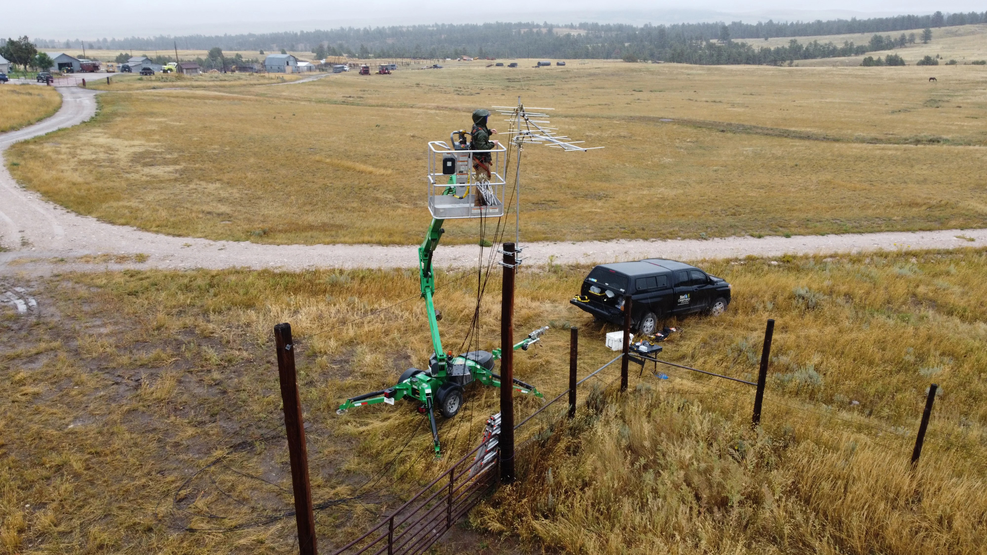 On September 17, a steady rain beat down on the Millikin Ranch. Despite the weather, staff from Audubon Rockies, along with Kylie Lamoree and Nick Haddad from Bird Conservancy of the Rockies (BCR), donned their raincoats and went to work on installing the very first Motus station in eastern Wyoming. It’s also the first Motus station to be installed on an Audubon Certified Bird-Friendly ranch in the nation. The ranch is part of the Audubon Conservation Ranching (ACR) program’s growing network of lands managed to provide vital habitat for grassland birds.